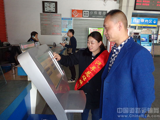 近日,淮安汽车总站组织巾帼志愿者以淮安汽车总站售票大厅为轴心;正确引导过往旅客使用“客运自助查询系统”和“自助售票系统”。“客运自助查询系统”有十个栏目供选。分别为:服务指南、旅客进站流程、到达站查询、半票规则、上车安全提示语、出行须知、公交查询、企业文化、淮安特色、淮安旅游等。在志愿者的引导下,过往旅客们纷纷浏览各类平台,既增添了不少兴趣;又获取了自己想要的资料;真乃一举两得。