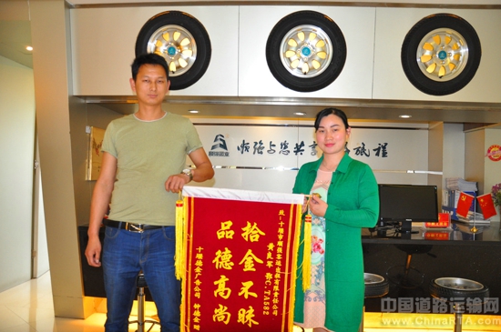 4月24日,市民钟先生将一面“拾金不昧 品德高尚”的锦旗送到顺强公司客服中心,感谢鄂CTA582的哥黄良军。