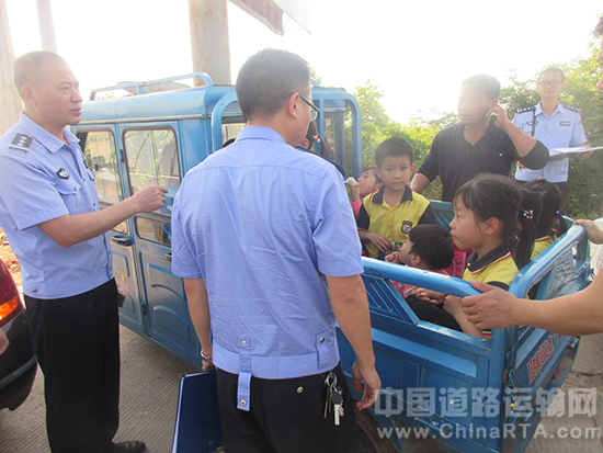 非法"五车"还装载10个孩子 太危险了