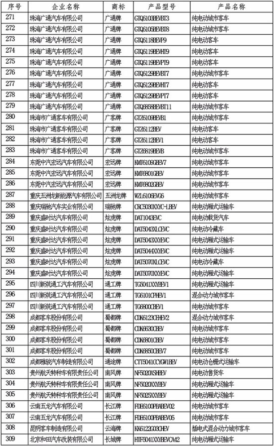 据统计,本次的目录共涉及309款车型,其中共有147款纯电动客车,7款混合动力客车,33款插电混动客车;27款纯电动乘用车,2款插电混动乘用车;另外,仅有2款燃料电池客车。