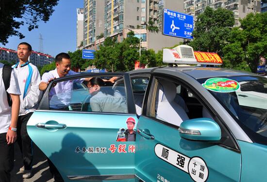 6月7日上午,顺强公司25台刚毅号、雷锋号星级服务车张贴“爱心送考绿色通行证”,为交通不便或家庭困难的考生免费提供一对一的接送考服务。