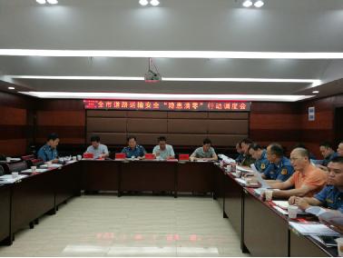 6月15日,娄底市召开全市道路运输安全“隐患清零”行动调度会。市交通运输局副局长扶林出席会议并讲话,市运管处处长李明辉主持会议。市交通运输局运输科、安全监督科负责人,市运管处班子成员、各科室(中心、大队)负责人,各县市区运管局局长、分管“隐患清零”行动的副局长、办公室主任,有关企业负责人共60余人参加会议。