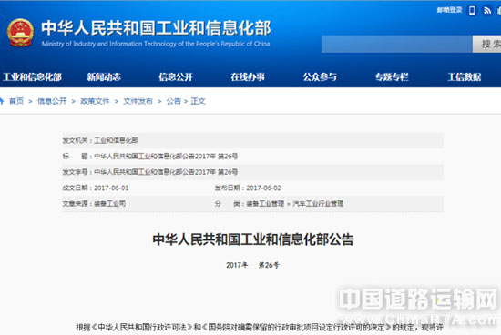 中华人民共和国工业和信息化部公告