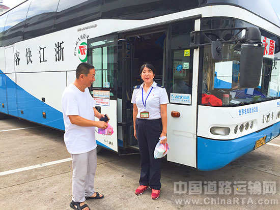 7月5日下午,烈日当空,骄阳似火。浙江双飞客运分公司二车队队长朱跃俊和管理人员到永康客运西站,一一向即将发往各地的客运班车司乘人员发放防暑药品。当永康至金华班车乘务员陈伟玉接过朱队手中防暑药品时开心地说:“谢谢关心。也替旅客们感谢你们,当旅途中旅客遇身体不适,防暑药品可缓减中暑之类的症状”。