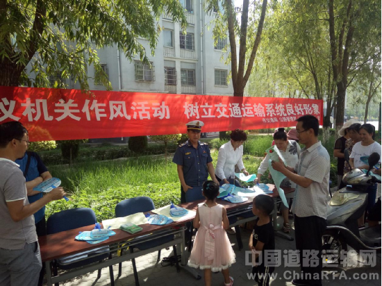 为进一步巩固深化“群众评议机关作风”活动、落实全面从严治党要求,切实改进机关作风,石嘴山市运管局在全市各级运管机构和道路运输行业继续深入开展“群众评议机关作风”活动。7月10日上午,石嘴山市道路运输管理局“群众评议机关作风”宣传活动走进星海镇东湖社区,宣传活动备受广大居民欢迎。在社区广场,石嘴山道路运输管理局联合市交通运输局、市邮政管理局、公路管理局石嘴山分局发放各类宣传资料1100余份,现场答疑解惑,听取意见,接受监督,回应关切。