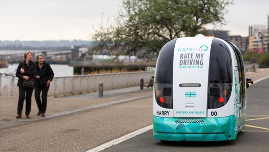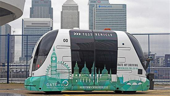 2017年4月4日,英国伦敦,英国无人驾驶巴士GATEway进行公路运行测试。