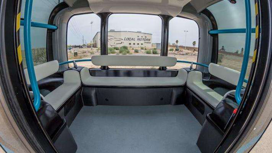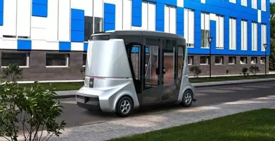 这款车型是由法国 Ligier 公司生产的 EasyMile EZ-10,预计载客人数10 名。EZ-10 靠一个4 kW 功率的异步电动机驱动,时速约为6英里(约合9.6公里)。