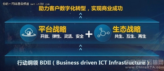华为在生态伙伴大会上宣布:“华为坚持管道战略,通过聚合产业链合作伙伴,构建智慧城市新生态圈,让城市更智慧”;“华为 New ICT提供云计算、大数据的处理能力,让海量的数据变成有价值的商业机会;构建产业新生态圈,共同促进产业发展”。