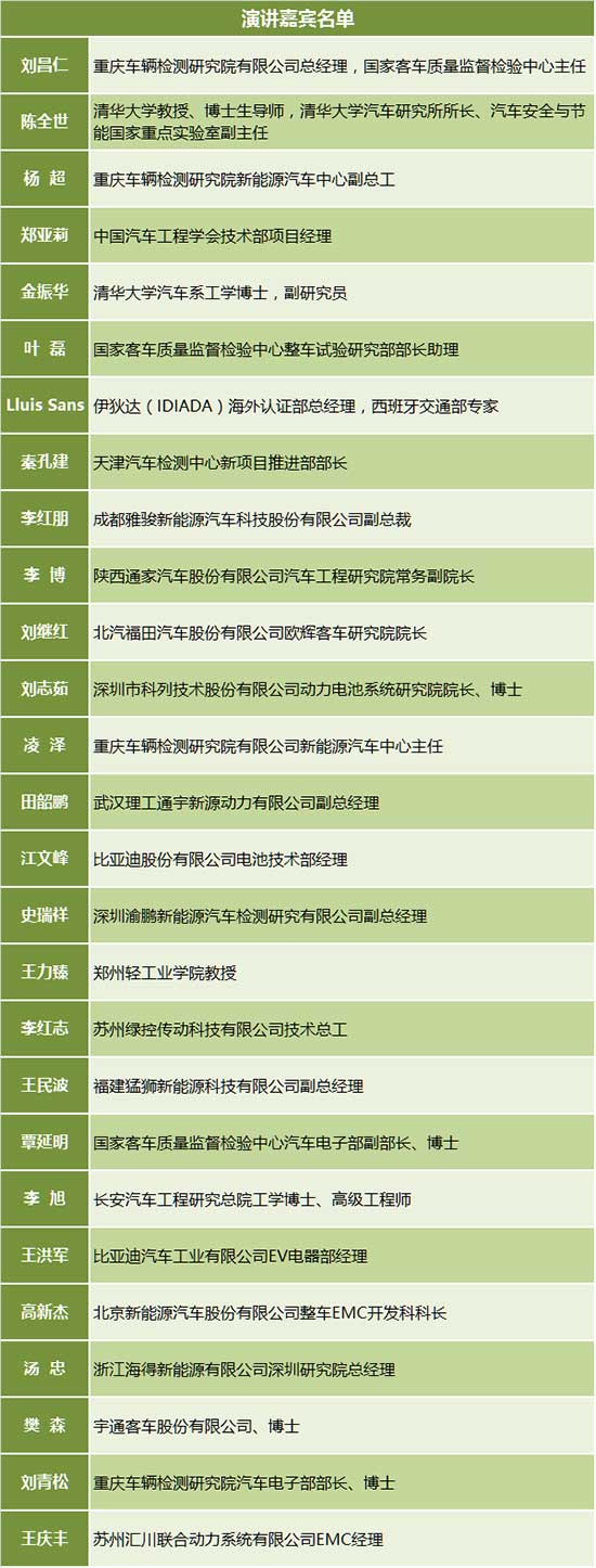 当然不是啦,是我们检测机构、整车企业、核心零配件企业等专家给的勇气啊,此次会议我们邀请到了以下重量级演讲嘉宾: