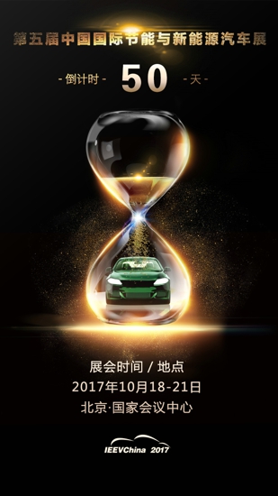2017年8月29日,2017(第五届)中国国际节能与新能源汽车展暨节能与新能源汽车成果展(IEEVChina 2017,中国国际节能与新能源汽车展)已进入倒计时50天。作为亚洲第一大新能源汽车展,节能与新能源汽车产业风向标,该展会将于2017年10月18-21日在北京国家会议中心举办。