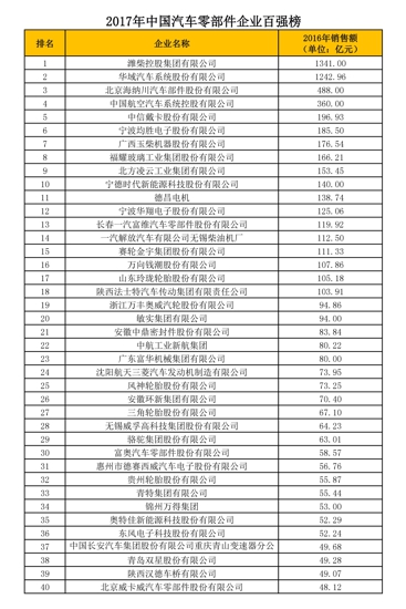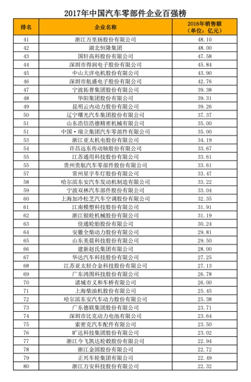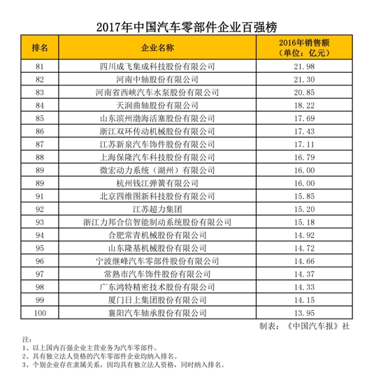 18家中国企业年营收超过百亿元 汽车零部件2017“双百强”榜单发布