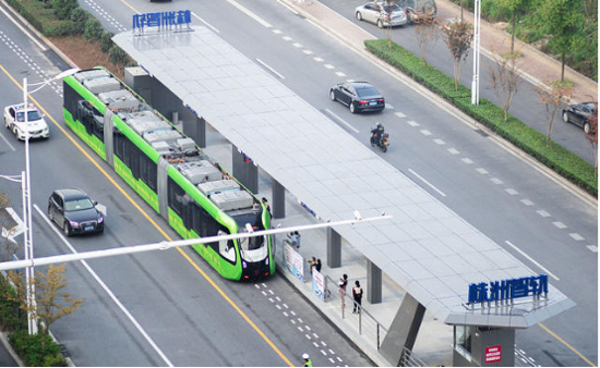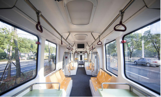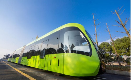 智轨列车装载新能源动力,具有零排放、无污染的特性,充电十分钟即可续航25公里。采用高铁柔性编组的模式,列车能根据客流变化调节运力,实行3至5节编组,最大可容纳300至500人同时乘坐,大大提高运力。