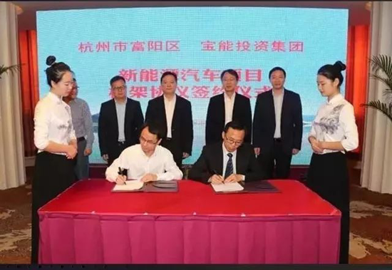 杭州富阳区政府分别与宝能集团、杭州新天地集团签订项目合作框架协议,这意味着年产30万辆新能源汽车项目、新天地产城综合体项目达成落户意向。
