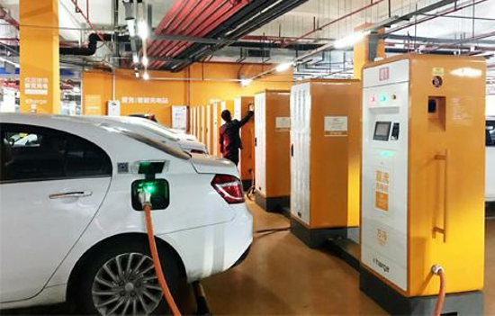 在我家附近的城西银泰停车场内就有一个万马的充电站,从进入地下停车场开始,就能看到上方的充电指示牌,很快就能找到充电站所在的位置。整个站点看起来比较正规,在这里充电我也比较放心。