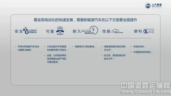 要实现汽车电动化的快速的发展,我认为这五个点还是非常非常重要的,安全、可靠、耐久、性能以及便利。
