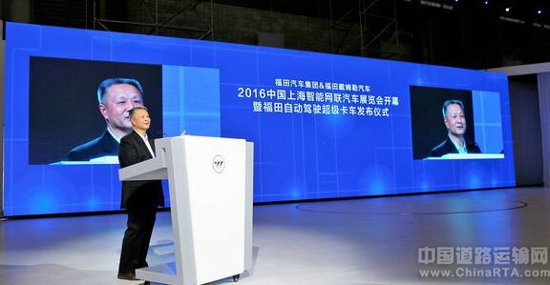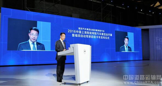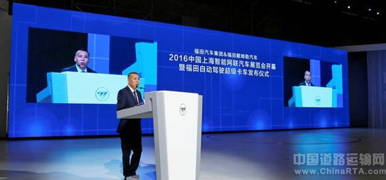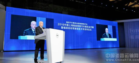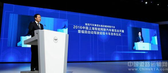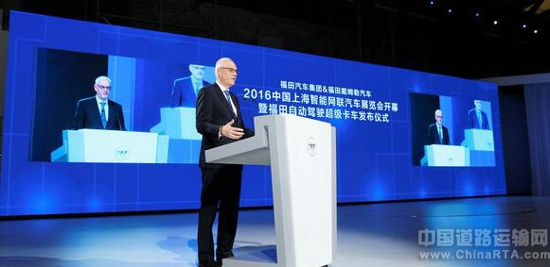 2016年11月14日,福田汽车集团在上海国际博览中心W2馆举办了“福田汽车集团&福田戴姆勒汽车2016中国上海智能网联汽车展览会”,携旗下的中国首款无人驾驶卡车、超级卡车系列产品、智能家庭车等汇聚最新科技的重磅产品,一站式呈现于全球合作伙伴和外界关注的目光之中,并提供了极具颠覆意义的全新体验。来自戴姆勒奔驰、康明斯、采埃孚、大陆电子、百度、博世、威伯科等福田汽车全球战略伙伴的企业大佬悉数亮相。