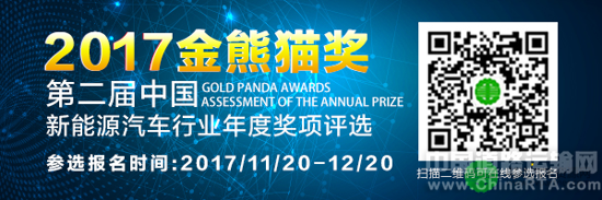 为不断适应新政策环境下的新能源汽车产业发展,推进产业链深度融合,深化技术在各领域创新应用,电动汽车资源网自2016年举办了首届中国新能源汽车行业年度奖项评选活动,得到了全行业大力参与与好评。2017年,电动汽车资源网将继续举办该主题奖项评选活动,且自本届开始,将中国新能源汽车行业年度奖项命名为“金熊猫”奖。(报名通道>>>)