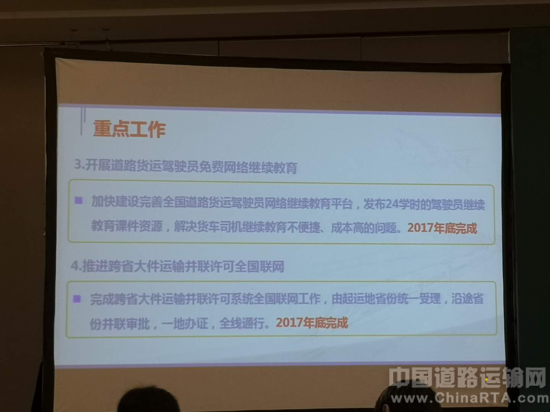 驾驶员的免费网络继续教育,将在2017年底完成网络继续教育平台的上线工作,发布24学时继续教育课件,明年开始推进驾驶员在平台上免费的继续教育。
