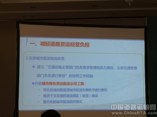 三是完善城市配送物流体系工作,开展城市绿色货运配送示范工程。鼓励符合标准的新能源车型发展应用,目前在深圳、成都、北京对新能源车辆发展给予了支持鼓励,对货权分配优先保障。关注干支衔接的物流园区的建设,推广集约化城市配送模式。