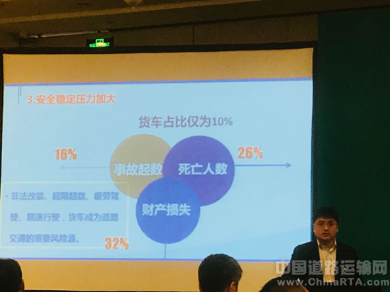 这也带来行业巨大的安全稳定压力。由货车造成的事故比率很高,货车占车辆比重仅为10%,但图示数据显示比如货车导致的死亡人数占比高达26%。