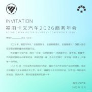 12月19日,福田汽车2026商务年会卡文业务分会将在京举行,福田卡文汽车全系产品矩阵亮相,同时福田卡文乐途将举行上市发布活动。在此,诚邀您与卡文共同见证,与我们一同站在科