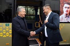 12月4日,宇通向乌兹别克斯坦锡尔河州古利斯坦市交付52辆ZK6890HGQ天然气公交车,为当地城市公共交通系统增添新运力。乌兹别克斯坦总统沙夫卡特·米尔济约耶夫亲临现场视察。 该批